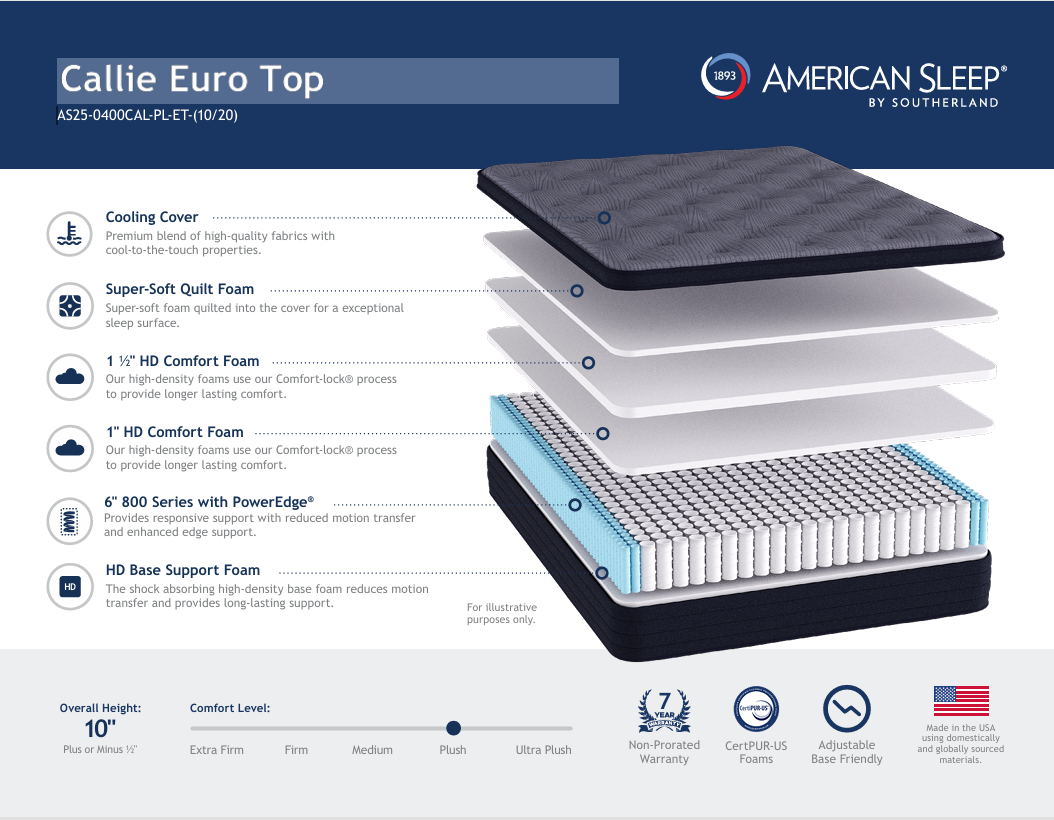 Pocketed Coil Support System – Individually wrapped coils contour to your body and reduce motion transfer for a more peaceful sleep.